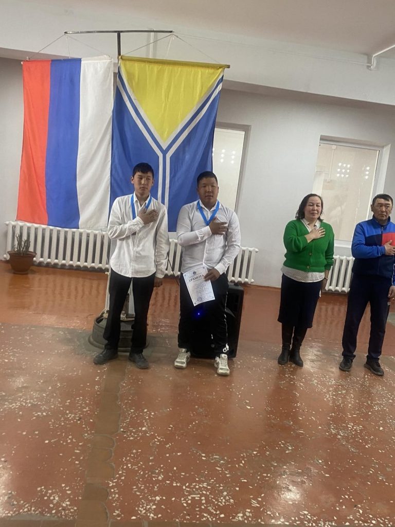 Опубликовано 10.04.202310.04.23г. Право поднять государственные флаги призеры республиканского соревнования по Сумо Арапчыт Даң-Херел, 8б класс и Дамыраң Норжай, 9а класс. Охват: 198 уч-ся