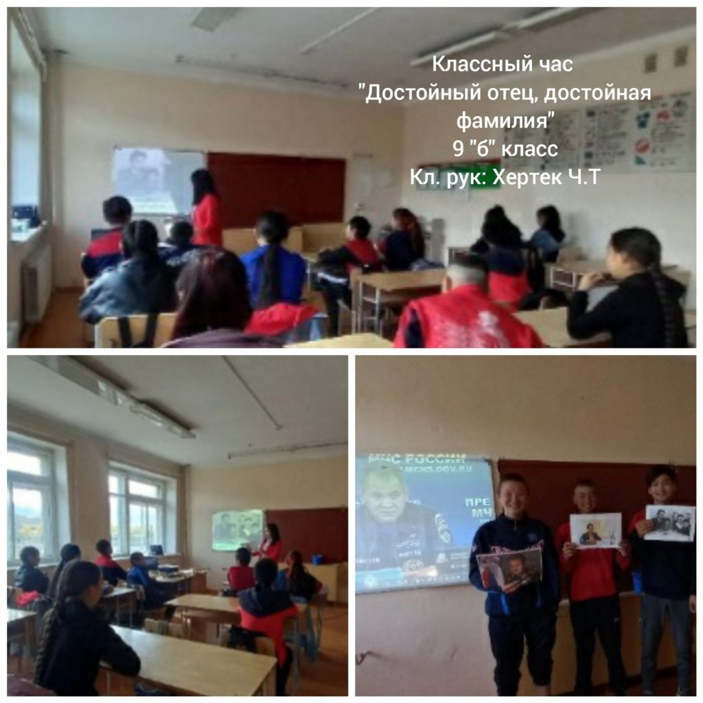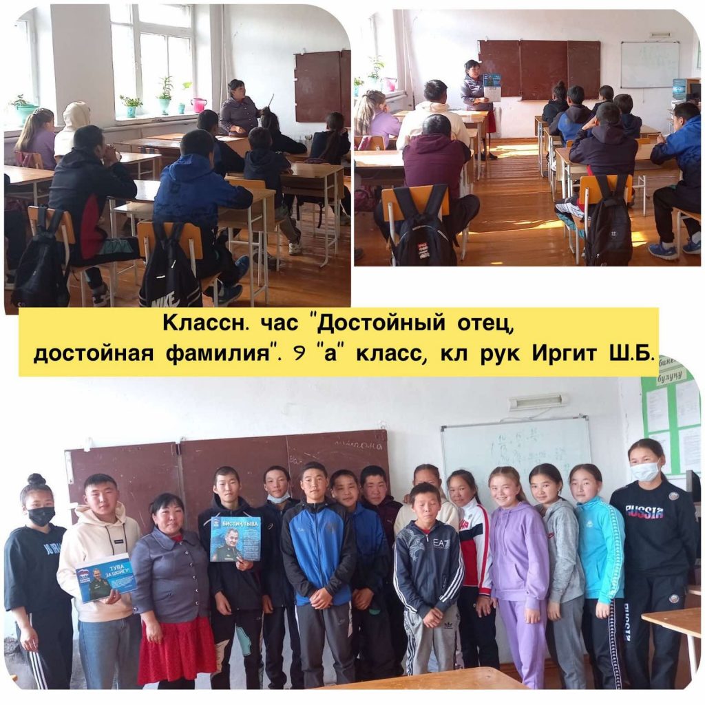 Сегодня, 21.09.21г. по приказу МКУ «УО» адм.муниц.района «Бай-Тайгинский кожуун» #238/1 от 09.09.21г. «О проведении тематических уроков ОУ Бай-Тайгинского кожууна РТ» в нашей школе проведены Единые тематические уроки «Достойный отец, достойная фамилия». Охват уч-ся: 67 (9-11 классы)