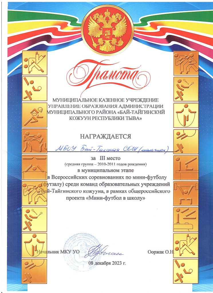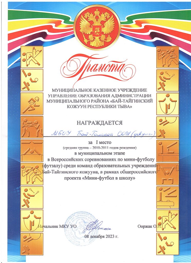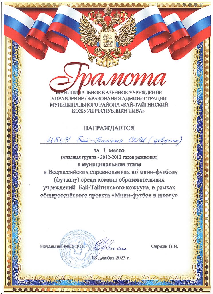 Футбол в школе Приказ № 44 от 01 сентября 2023 г. «О реализации проекта «Футбол в школе»» Положение о школьном спортивном клубе «Монгулек» МБОУ СОШ им. Н. С. Конгара