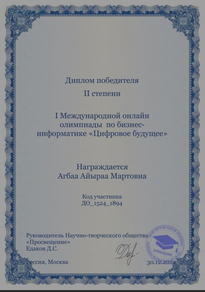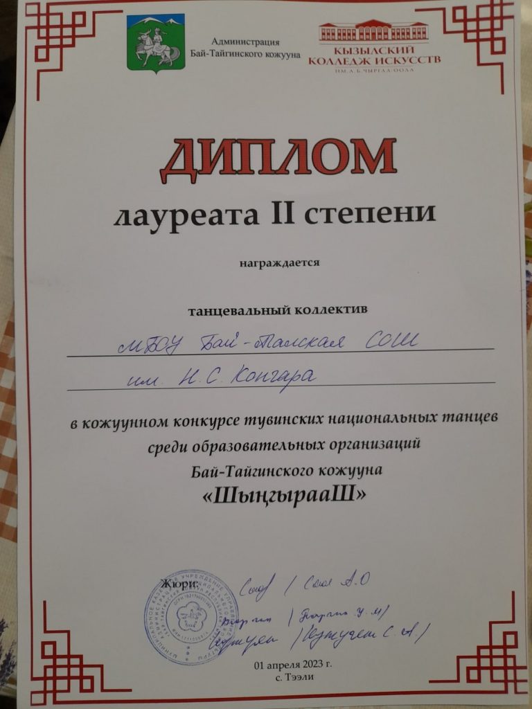 Сегодня, 05.04.23г. команда МБОУ СОШ им. Н.С. Конгара с. Бай-Тал приняла участие во Всероссийской исторической игре «1418», посвященная событиям Великой Отечественной войны. Игра для учащихся прошла в увлекательном формате. Ответственный учитель истории Ооржак А.В.Бөгүн, 01.04.23ч бистиң өөреникчилер «Шыңгырааш» танцы мөөрейинге киришкеш 2-ги черге төлептиг болганнар. Удуртукчу башкызы: Салчак Долаана Маадыровна база ККИ-ниң 3-кү курстуң студентизи Монгуш Мөңгүней Чечек-ооловна.Сегодня, 29.03.23г наша Дарина, ученица 10 класса участвовала в республиканском конкурсе «Город мастеров» и заняла 3 место. Руководитель: Сарык-Деге Р.С.Бөгүн, 17.03.23ч. кожуунга болуп эрткен «Шеверлер хоорайынга» бистиң уруглар эки киришкеш грамоталар-биле шаңнатканнар. Холдан кылган ажылдарының проектизин жюри мурнунга камгалап таныштырганнар. 1. Хертек Арбай- 1 м 2 Хертек Дарина- 1 м 3. Агбаа Айыраа- 2м 4. Иргит Агбаа- 2м 5.Салчак Алия- 3м 6.Ананды Чинчи- 3 м 7.Хертек Зарина- 3 м 8 Кужугет Кудерек- 3 м 9. Кунгаа Саглай- 3мПоздравляем, Айыраа! Молодчина, умница26.12.22г. Ёлка Главы Республики Тыва26.12.22г. Ёлка отличников председателя администрации Бай-Тайгинского кожууна.