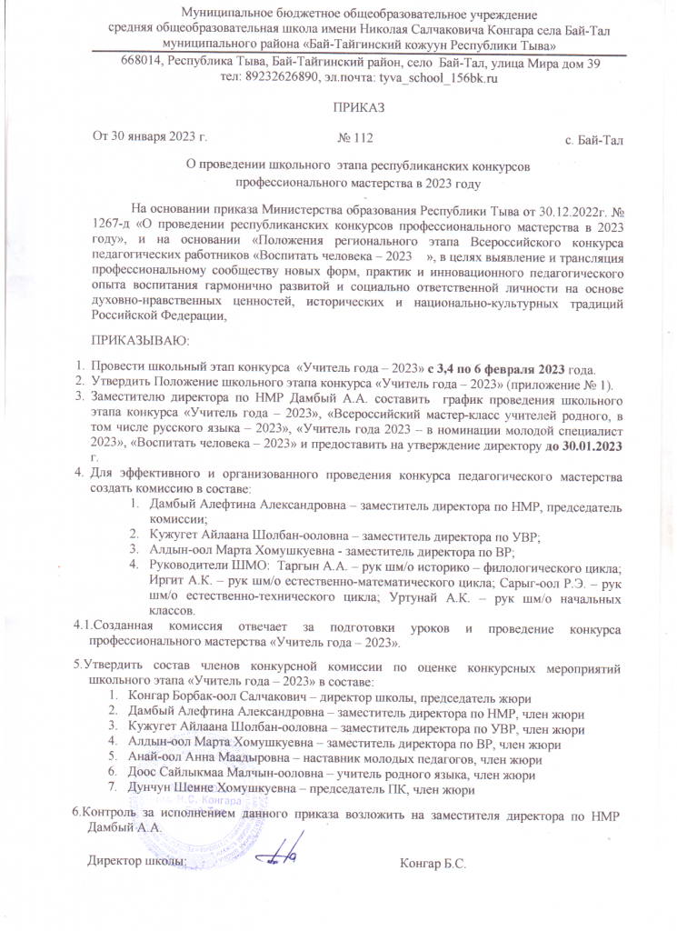 - «Учитель года-2023»-Салчак Чодураа Мергеновна, учитель английского языка;