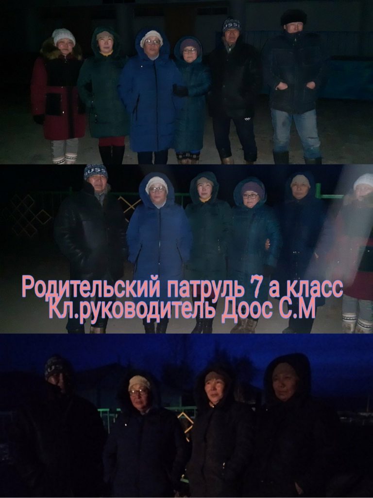 31.1.2.2022ч. Экии, 8 а класстын патрульче 2 ача, 2 ава, 2 башкы база класс башкы кежээки концерт соонда оореникчилерни чандырган. Кудумчулар шыпшын.28.12.2022ч.7а класстың ада-иелери кежээки хайгыылче үнгеннер. Ёлкада уругларны хайгаараан.27.12.2022ч.Бо хун 6б класстын 3ава база класс башкызы кежээки хайгыылче унген. Кудумчуларда, ээн тудугларда назы четпээн оореникчилер таварышпаан. Класс башкызы Хертек К.О.23.12.2022ч. Школаның коллективи бөлүктерге чарлып алган суму иштиниң дежурныйлаашкынынче идепкейлиг үнүп турарлар.06.12.2022ч 9 «а» класстың ада-иелери кежээки патрульче үнген. Кудумчулар, уруглар ойнаар каток чанын, ээн тудуглар чанын көргүлээн. Өөреникчилер таварышпаан. Кл башкызы: Доос С.М.3.12.2022г. 8б класстын ада-иелери кежээки хайгыылче унгеннер. Кудумчулар шыпшын, оореникчилер таварышпаан. Кл.башкызы: Дунчун Ш.Х.Ноябрь 15-те 3 «а» класстың ада-иелери кежээки дежурныйлаашкынче үнгеннер. Кудумчулар шыпшың. Өөреникчилер таварышпаан. Класс башкызы: Кинин Д.Б09 ноября 2022 г на родительский патруль вышли родители 3 группы 1 а класса. Во время рейда несовершеннолетних не обнаружено. Правонарушения не выявлены. Кл. рук-ль: Хертек А.А.9 «б» класстың ада-иелери кежээки хайгыылге унгеннер. Кудумчулар шимээн, өөреникчилер көзүлбээн. Уруглар ойнаар шөлчүгештер ээн. Кл.башкызы: Ооржак С.С01.11.2022. 9″а» класстың ада-иелери 4 кижи составтыг кежээки хайгыылге унгеннер. Кудумчулар шимээн, өөреникчилер көзүлбээн. Уруглар ойнаар шөлчүгештер ээн. Кл.башкызы: Доос.С.М.31.10.2022г. 8 «б» класстын ада-иелери кежээки хайгыылге унгеннер. Кудумчулар шыпшын, оореникчилер таварышпаан. Кл.башкызы: Дунчун Ш.Х.28.09.22ч. Бо хун 6б класстын 4 ава кежээки патрульче унген. Уруглар чыглыр шолчугештерни база ээн тудугларны корген. Суур ишти шыпшын болган. Класс башкызы: Доспан К.О.26.09.22ч. 5 б класстын 4 ава кежээки патрульче унген. Назы четпес уруглар чыглыр шолчугештерни база ээн тудугларны корген. Суур ишти шыпшын болган. Класс башкызы: Баавыл Ч.Х.Сентябрьның 19-та 3б класстың ада-иелери кежээки дежурныйлаашкынче үнген. Уруглар чыглыр черлерни, ээн тудугларны көрген. Кудумчулар шыпшың, өөреникчилерге таварышпаан. Класс башкызы: А.М. Хертек. #Родительский_патруль1717 сентября родители 3″а» класса вышли на вечернее дежурство в составе 4 человек На улице было тихо и спокойно, посетили общественные места, заброшенные здания и дома. Кл рук-ль: Кинин Д.Б. #Родительский_патруль1715.09.2022 г. вышли на родительский патруль родители 2 » А» класса в составе 6 человек. Посетили места скопления несовершеннолетних, улицы нашего села, детские площадки. Играющих на улице и игровых площадках никого не было. Кл. рук: Хертек А. А.13.09.2022г вышли на родительский патруль родители 1 группы (всего 3 группы) 1″ А» класса в составе 8 человек. Посетили места скопления несовершеннолетних, улицы, детские площадки. Играющих отправили по домам. Нарушений не было. Кл. рук: Хертек А. А. #Лучшийродительскийпатруль202229.05.22. Кежээки хайгыылче 1 «а» класстын 1 ава, 2 ача болгаш класс башкызы патрульдаан. Кудумчулар шыпшын, оореникчилер таварышпаан. Кл. башкызы Хертек А.А. МБОУ СОШ им. Н.С. Конгара с. Бай-Тал #ЛучшийродительскийпатрульТувы202225.05.2022 г. 11-ги класстын 2 ава болгаш класс башкызы патрульдаан. Куду уруглар ойнаар шол болгаш Мира, Монгулек кудумчулары шыпшын, оореникчилер таварышпаан. МБОУ СОШ им. Н.С. Коггара с. Бай-Тал #ЛучшийродительскийпатрульТувы2022