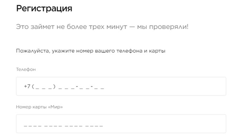 3. Укажите номер телефона, к которому привязана карта МИР, и номер карты.