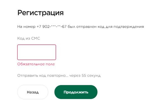 5. На номер телефона придет SMS. Введите SMS и нажмите «Продолжить».