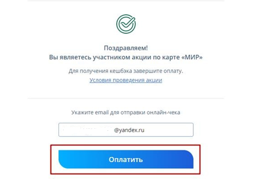 7. Сверьте email. На этот адрес вы получите электронный чек об оплате. Нажмите «Оплатить».