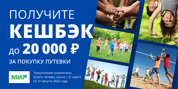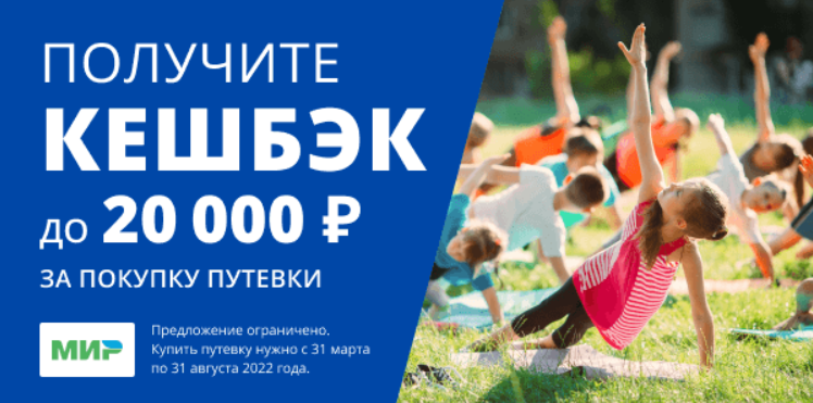 Оплачивайте путевку картой «Мир» и получайте кешбэк! Это официальная программа от Ростуризма и платежной системы «Мир».