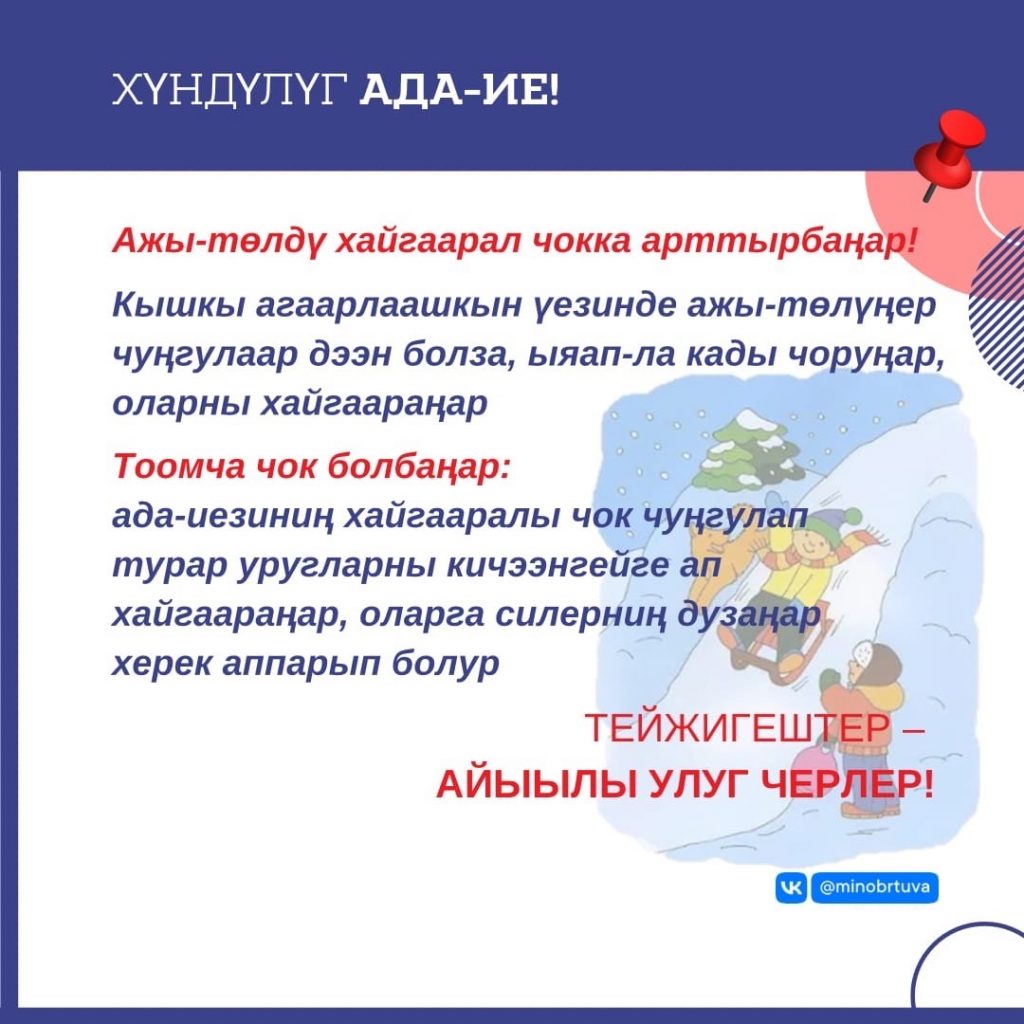 20.12.22г. Родительские собрания в МБОУ СОШ им. Н.С. Конгара с. Бай-Тал на тему «Безопасность каникул в зимний период».