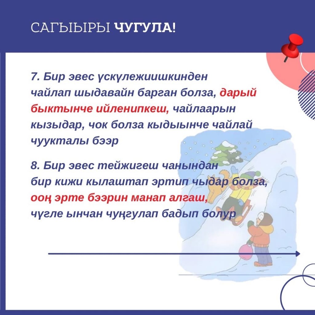 Силерниң дыштанылгаңар чүгле эки эвес, а айыыл чок болзун деп бодаар болзуңарза, айыыл чок чоруктуң дүрүмнерин сагыыры чугула. Чуңгулаашкын үезинде бодун канчаар айыыл чок болдурар дээрзин бистиң медээлиг карточкаларывыстан көрүп ап болур